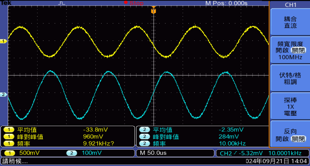 where Ir0 and It0 are the average intensities, Vr and Vt are the visibilities, and ϕ is the phase-shift difference of the SPR sensor. The interference signals were recorded using an oscilloscope, as shown in figure 5. According to the principle of the SPR sensor, the phase shift difference ϕ can be expressed as:
