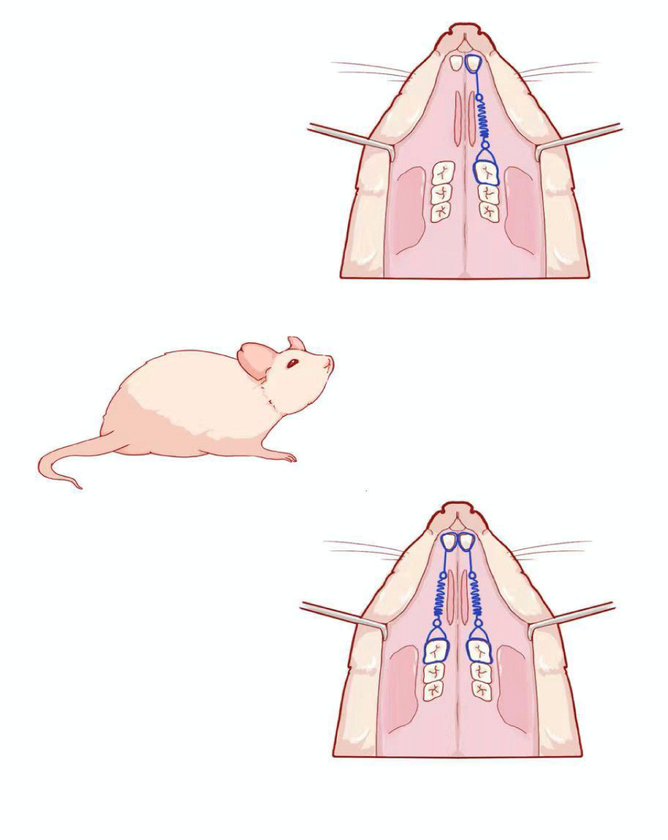 In the majority of the animal experimental model in orthodontic studies, Wistar rat has showed much more adaptation to reveal the nature of orthodontic tooth movement, since the demonstration in previous studies. The appliance of orthodontic in our study is consistent with the theory of three elements: strength, direction and functional point. Compared with the elastics, the appliance that closed-coil spring between the first upper molar and upper central incisor has exhibited much longer exertion period and more precise force control [20]. To investigate direction of tooth movement in our study, the molar mesial moving along the maxillary arch is much more similar to orthodontic treatment. Moreover, bone amount at the mesial side is more adequate than the buccal side [21].Based on correlative references, we used 0.3N [17] as the optimum force for moving rat upper first molars. There was satisfactory changes in modeling of the alveolar bone and the obvious side effects have not been discovered in our study. Moreover, limitation of the teeth transportation distance at the mesial side and continuity of the maxillary incisors eruption is worth reminding in Wistar rat model. Thus, the longest experimental period in our studies should be no more than 4 weeks [16].