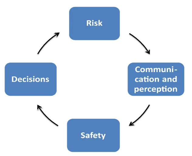 Figure 2: The safety loop describes the relationship of objective risks and its subjective perception mediated by the type of communication. The communication of “bad news” can considerably reduce the “perceived safety” while the effects of the communication of “good news” have only rarely detectable effects [13,14]. The effect of communication, which can significantly increase the subjective perception of objective risks, can be quantified. According to our data, the subjective perception of objective risks, the "perceived safety", can be significantly impaired by "bad news" but can hardly be influenced by the communication of "good news" [14]. Due to the considerable risk of influencing decision-makers at all levels of a society and almost unlimited population groups with simple messages, this topic requires an interdisciplinary approach.